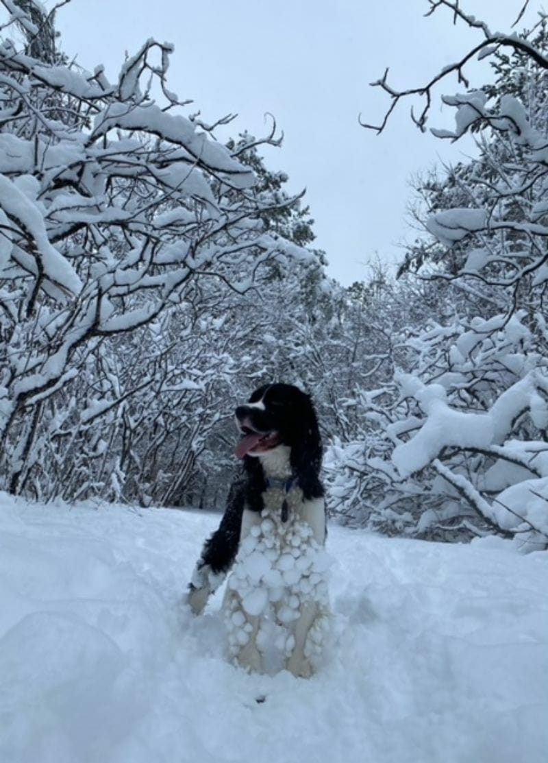 Today’s photo is of a very good dog sent to us by reader Nadie Boivin, and taken by Laura Kelly at Conroy Pit. “Gustave was a very happy dog and ready for a snowball fight,” Nadine said.