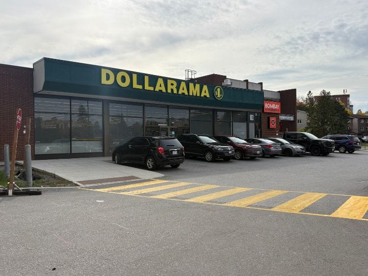 A Dollarama, Indian restaurant, and a few other small businesses are currently located on the proposed development site. Photo by Charlie Senack.