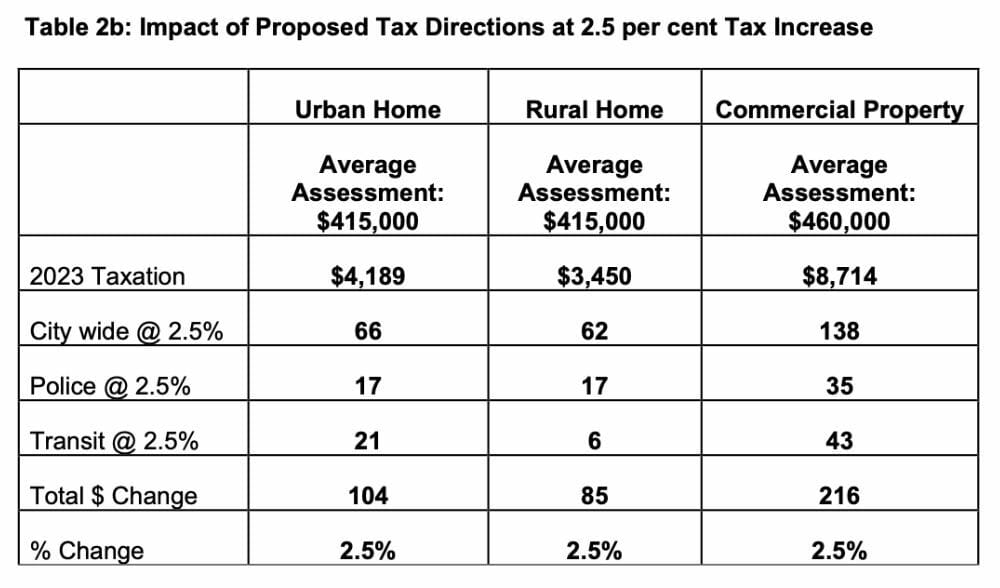 The cost: The city put together estimates for how much the tax increases would cost the average home. For an urban house, a 2.5 percent increase would cost about $104 on the year, while it would cost about $85 for a rural home.