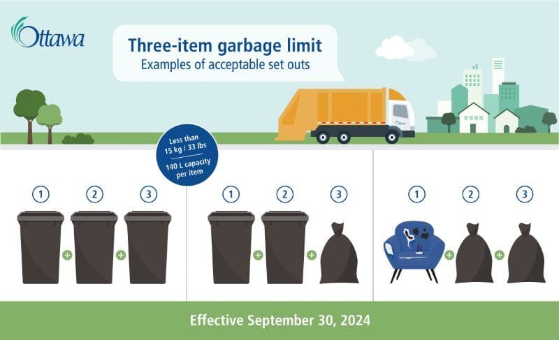 Timeline: The plan goes into effect Sept. 30. At first, all garbage will be picked up, even if the amount is over the limit, CTV reported. When November rolls around, crews will pick up all but one bag and leave a notice if the number is over the limit. In December the limits will be fully enforced, and only three items will be picked up.