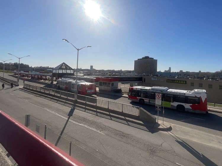 An OC Transpo bus passes through Eagleson Station. Photo by Charlie Senack.