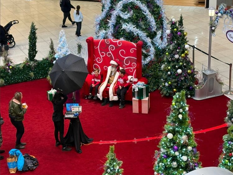 Kids visit with Santa Claus at the St Laurent Shopping Centre. Photo by Charlie Senack.