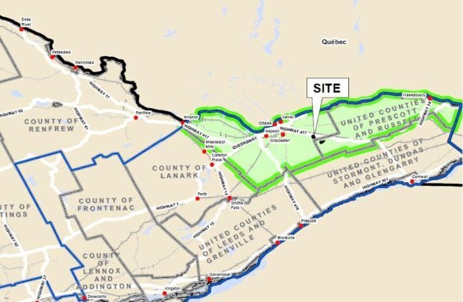 A map of the location of the property considered for the landfill. Photo provided by the City of Ottawa.