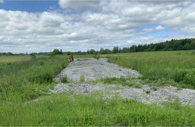 A test of a road on Frontier Road. “This is the only actual work that has been done on the site,” said Régimbald. The test road was built on piles to test the soil. Photo provided by the Carlsbad Springs Community Association.