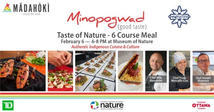 Taste of Nature, an immersive six-course Indigenous dining experience, will take place at the Museum of Nature on Thursday, February 6 from 6 PM to 8 PM. Mādahòkì Farm’s Chef Billy Alexander is joined by renowned Indigenous chefs, Trudy Metcalfe-Coe, and Joseph Shawana who together will showcase dishes made with foraged ingredients, sharing the cultural significance of each. Limited tickets are available now.