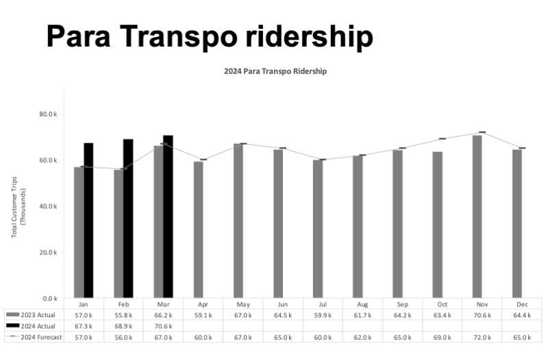 ParaTranspo ridership, meanwhile, continues to exceed expectations: