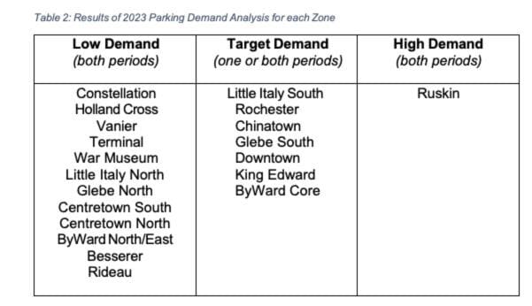 According to the city, there were three previous rates, $1.50, $2 and $3.50, with 85% of the locations at the highest price. Now that’s changing, with rates increasing to $4 in six zones, $4.50 on Ruskin Street near the Civic Hospital and dropping to $1 near Holland Cross, Terminal and Rideau. Prices will adjust by $0.50 periodically depending on demand. It is expected to generate around $440,000 a year.