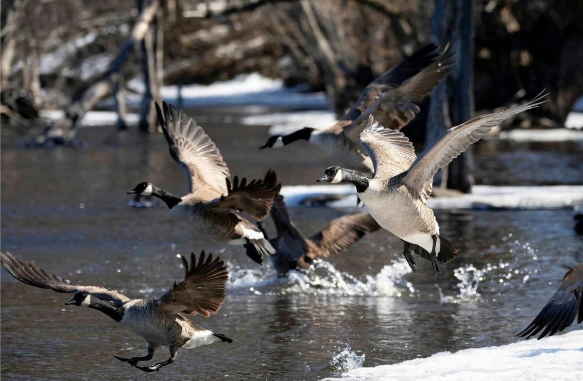 The geese are back! Reader André Martin sends in this beautiful photo of Canada Geese returning to the Ottawa River near Mud Lake.