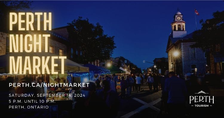 Join us for the much-anticipated return of the Perth Night Market on Saturday, September 14, 2024! Starting at 5 p.m., this free event features over 90 artisans, crafters, and makers from Lanark County, Ottawa Valley, and beyond. Enjoy live entertainment, including musicians and magicians, showcasing local talent.