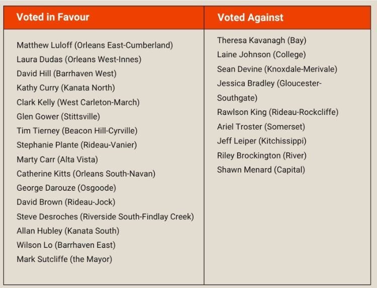 The Lookout has also spoken to College Ward Coun. Laine Johnson and Barrhaven West Coun. David Hill who both said it was too soon to give an opinion on how they’d vote. Previously, Johnson voted n,o whereas Hill voted yes.